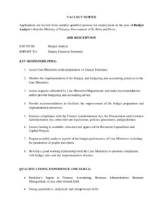 Vacancy Notice – Budget Analyst – February 2nd 2024